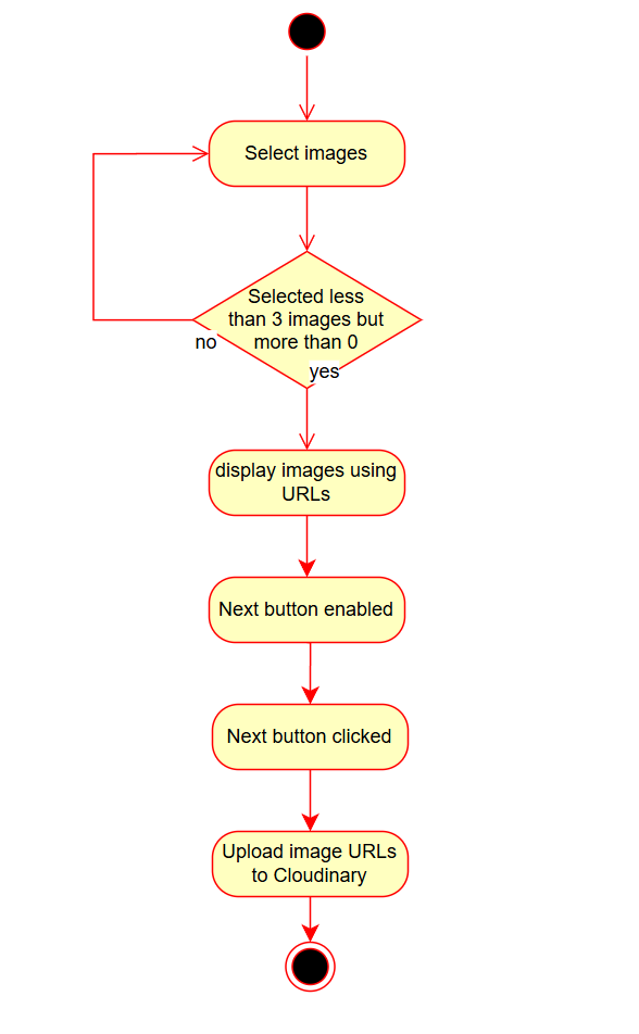 The following shows an activity diagram, which describes the flow of events when a user uploads an image.